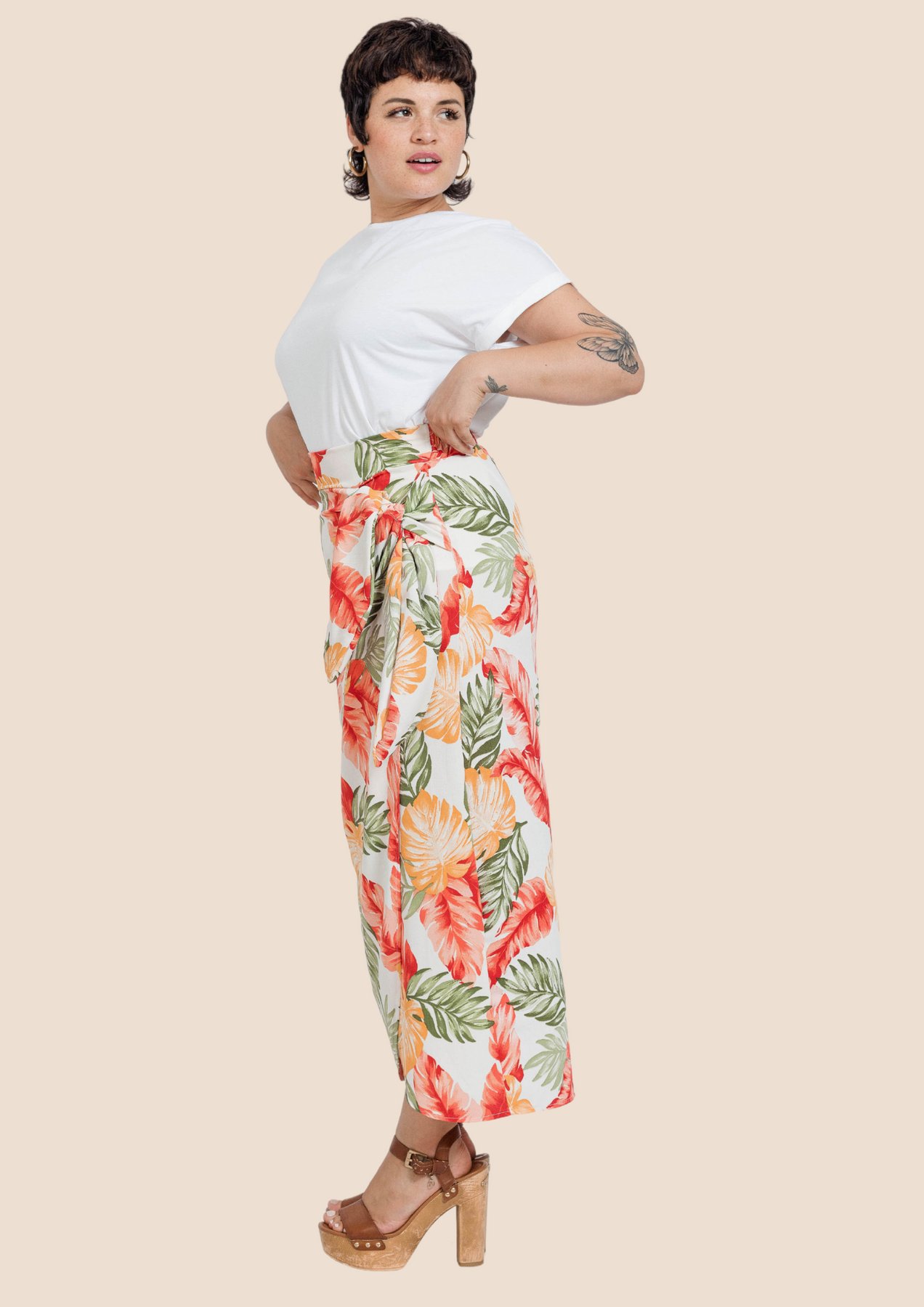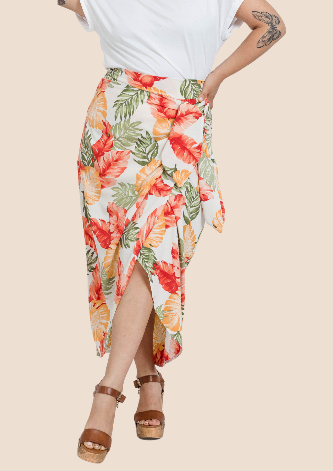 Hermosa falda con estilo envolvente, perfecta para para la estación de verano.