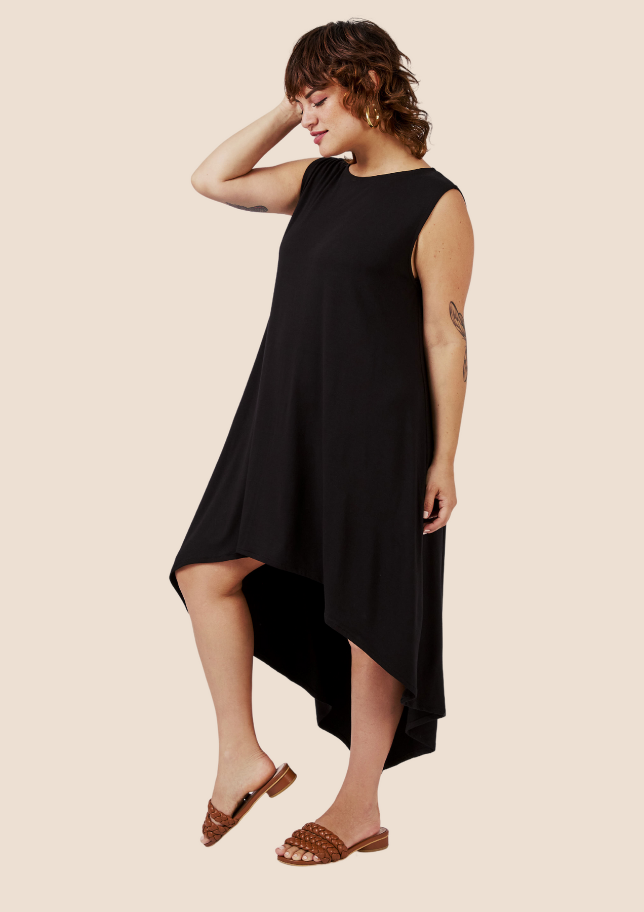 Maxivestido de diseño asimétrico confeccionado en material algodón viscosa de excelente calidad.