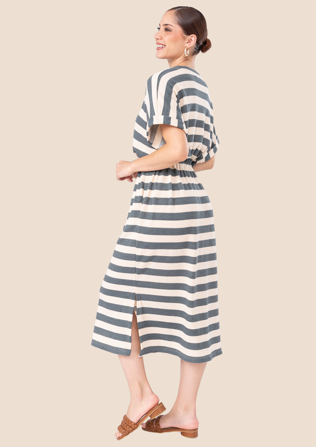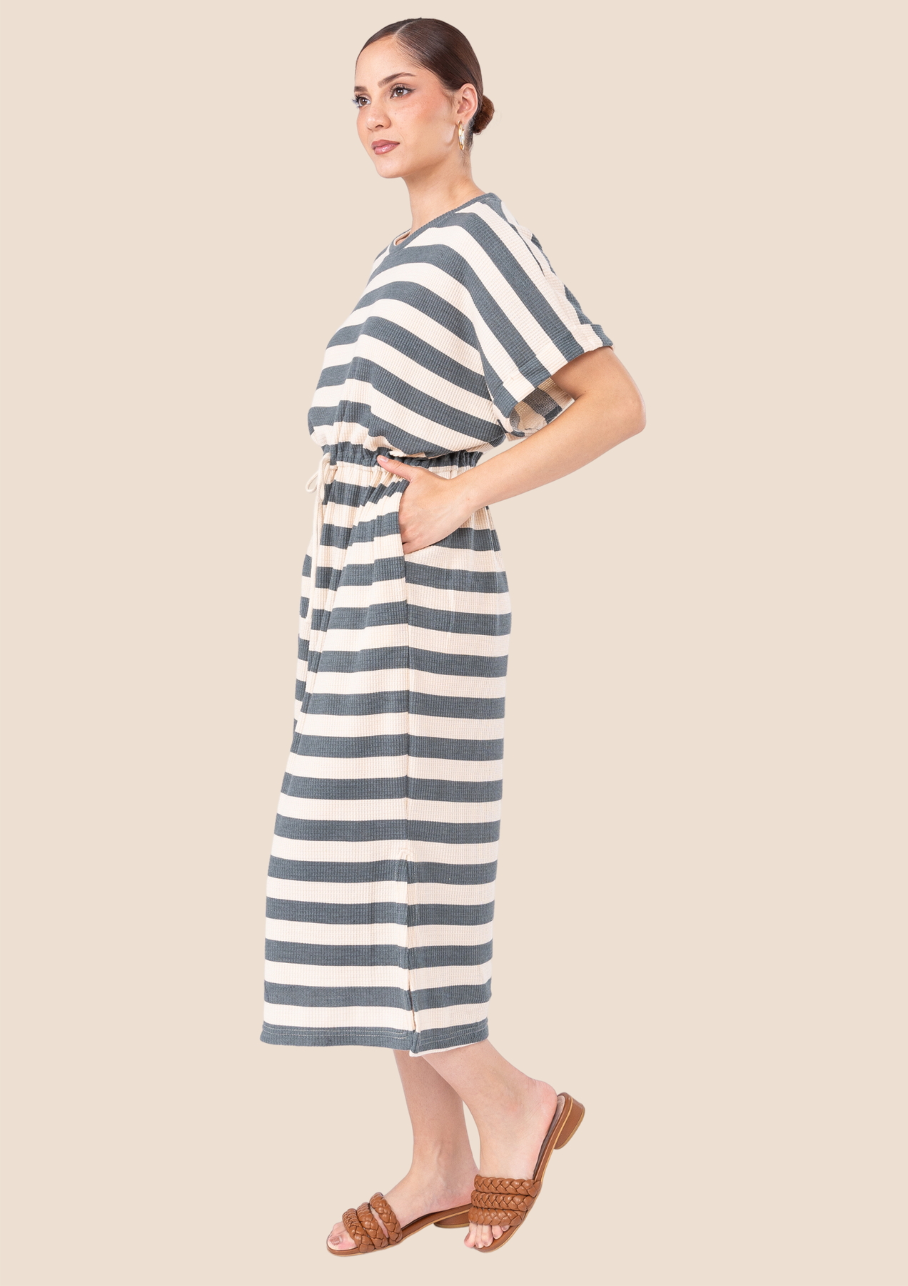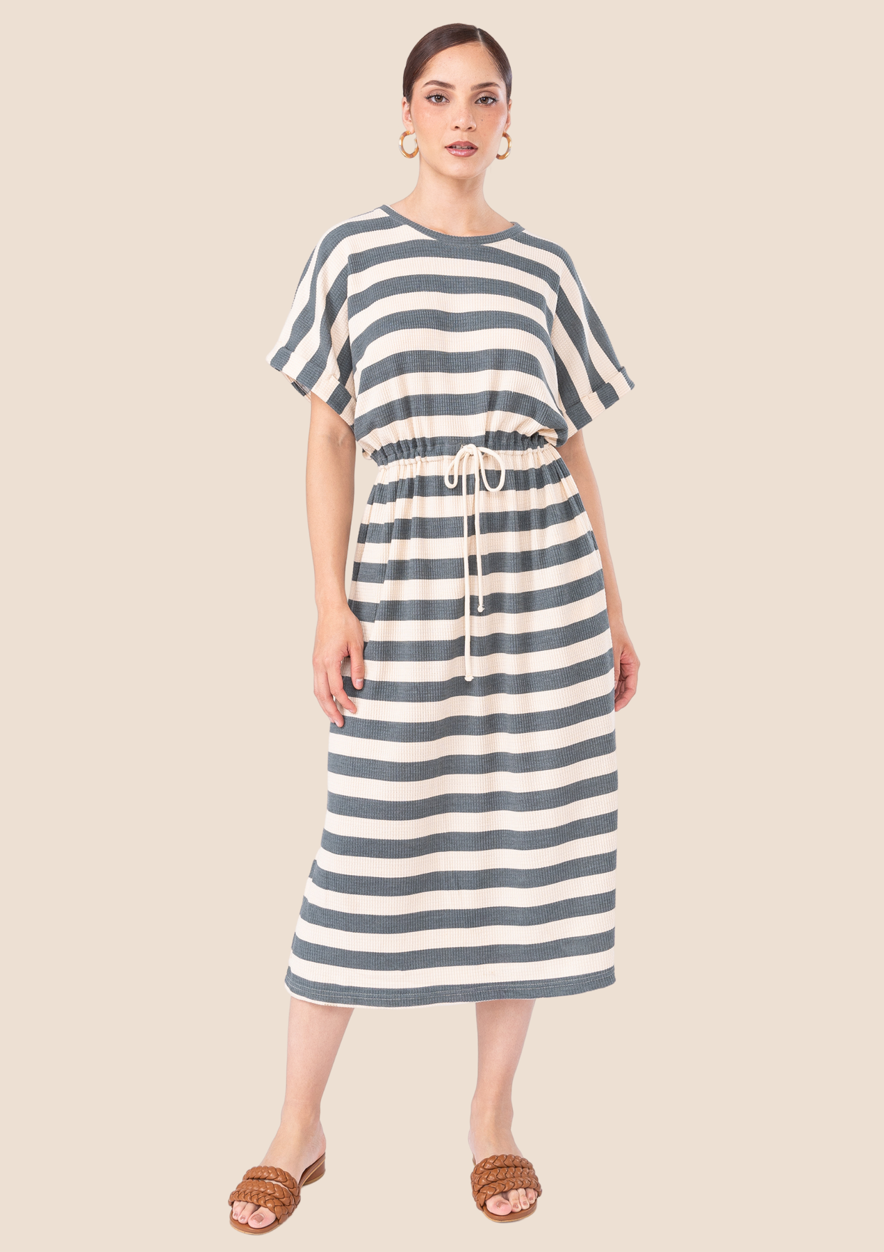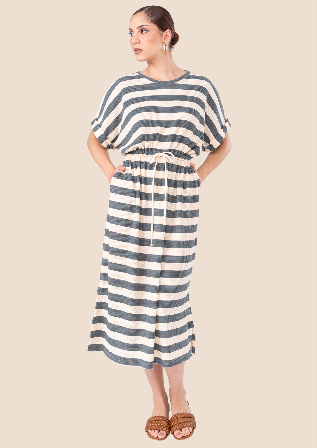 Maxivestido oversize en material WAFFER. Tela de textura suave y perfecta para la estación.